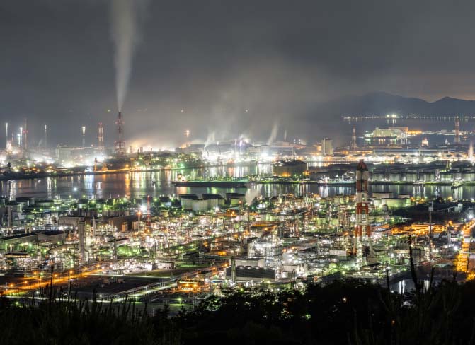 倉敷地区を代表する巨大製鉄所では、日本の産業と暮らしに不可欠な「鉄」を24時間、365日、休むことなく製造しています。